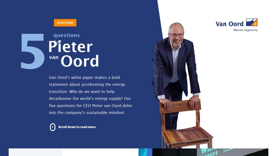 Van Oord’s white paper makes a bold statement about accelerating the energy transition. Why do we want to help decarbonise the world’s energy supply? Our five questions for CEO Pieter van Oord delve into the company’s sustainable mindset.
