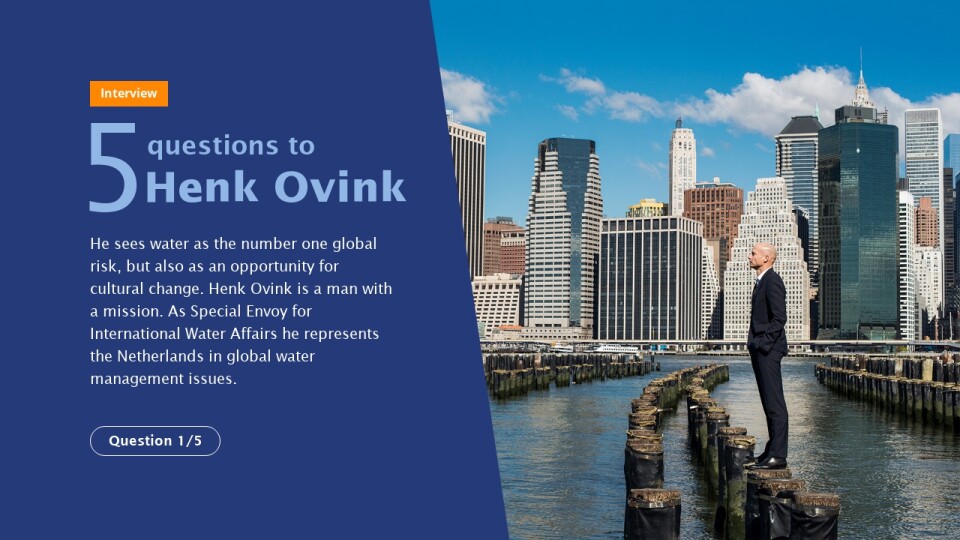 He sees water as the number one global risk, but also as an opportunity for cultural change. Henk Ovink is a man with a mission. As Special Envoy for International Water Affairs he represents the Netherlands in global water management issues.